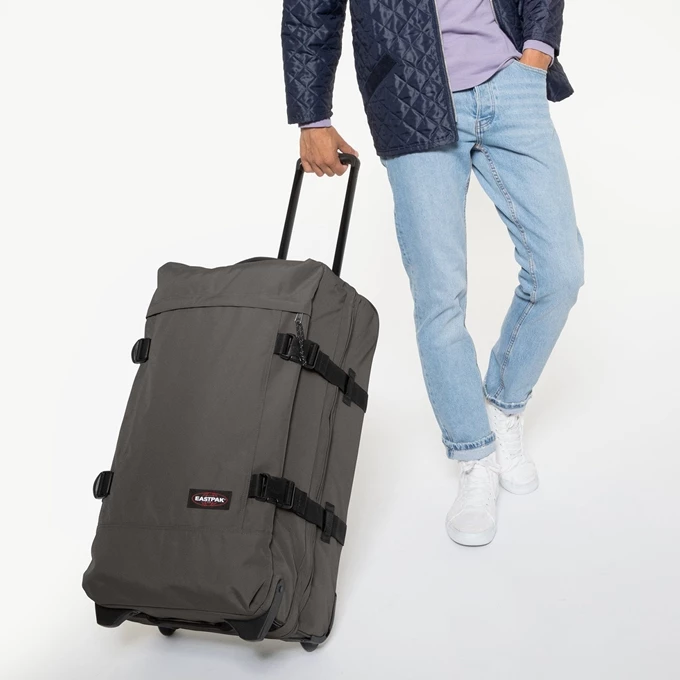 De Eastpak Tranverz M is de middenmaat reistas uit de Tranverz serie. De reistas heeft twee soepele wieltjes, een verstelbare trekstang en twee handvatten waardoor de koffer gemakkelijk overal mee naar toe te nemen is. Aan de binnenzijde van de tas bevinden zich twee compartimenten die worden afgesloten met een rits en ook aan de voorzijde van de tas is een ritsvak te vinden. De spanbanden maken het mogelijk om bagage zo compact mogelijk te maken. Thuis kan de tas worden platgemaakt en zo worden opgeruimd.